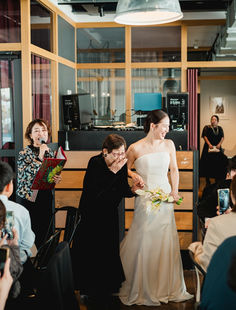 嬉しそうに涙を流す新郎様を見て、一緒に涙目になる新婦様。